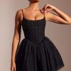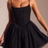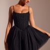 Embellished Corset Tulle Skirt Mini Dress in Black