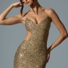 Your time to shine. Crafted from luxe stretch fabric, the Sayzel mini dress is overlaid with scores of sparkling sequins that twinkle under spotlights, perfect for evening occasions. It’s cut to a bodycon silhouette with figure-defining curved cut-outs at the waist and features an open back. It’s framed with a V-shaped neckline and stretchy rouleau straps for enhanced support.