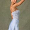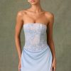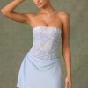 Embellished Draped Strapless A-Line Mini Dress in Sky Blue