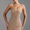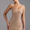 Endless sparkle. Hand-embellished with scores of sparkling HOTFIX crystals, the Sindre mini dress is a guaranteed head-turner. It’s crafted from premium 20D mesh to a bodycon silhouette for a signature contoured look. Underlaid with a lightweight single-layer mesh lining, it’s framed with a flattering square neckline and complete with tapered shoulder straps.