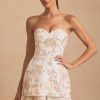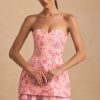 Structured and strapless, the Eliselle mini dress is cut to a shapely silhouette and overlaid with scores of three-dimensional sequins arranged in a coral-inspired pattern for maximum impact. The premium mesh base is underlaid with floaty chiffon ruffles for dynamic movement with every step and the lace-up back is fully adjustable for your perfect fit.