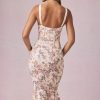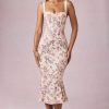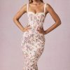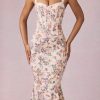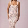 Classic, sculpted, endlessly chic. The Valentina midaxi dress is crafted from premium stretchy georgette fabric to a figure-defining fishtail silhouette, creating the hourglass silhouette you love. It features a corset bodice, vintage-inspired peekaboo detailing with delicate picot lace trims, and soft cups for enhanced shaping and support. The wide tapered straps are fully adjustable for your perfect fit.
