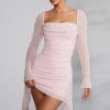 We’ve reinvented our signature embellished mini dress for the new season. Designed in our fully embellished, dual lined mesh fabric, the Tivoli mini dress features a bust flattering cowl neckline and waist cinching ruched bodice. Cut to a mini length with a thigh skimming a-line skirt, the Tivoli mini dress is accentuated with delicate waterfall draped detailing at the sides and features our signature, fully embellished single layer mesh sleeves. Pretty, delicate and fully embellished, Tivoli is the perfect birthday dress.