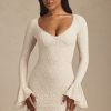 Unlock the secret of daytime elegance with the Nara mini dress. Cut to a figure-enhancing bodycon silhouette with a ruffled skirt and cuffs, it’s crafted from premium floral lace with a touch of stretch for enhanced comfort. It’s framed with a scoop neckline traced with pretty scalloped trims.