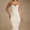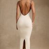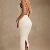 Modal Contrast-Trim Backless Midaxi Dress in Ivory