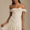 Made for sunlit afternoons. A classic style you’ll reach for time and time again, the Nahida mini dress is crafted from premium stretch lace and cut to an off-shoulder silhouette with delicate ruffled sleeves and V-shaped trims that create a sculpted look through the bodice. The A-line silhouette is accentuated with contrast godet pleats for stunning movement with every step.