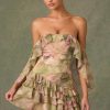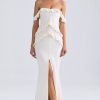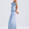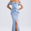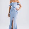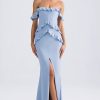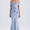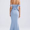Off-Shoulder Ruffle-Trim Gown in Light Blue