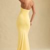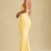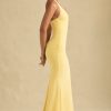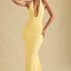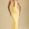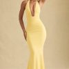 Ruched Backless Halterneck Gown in Pastel Yellow