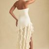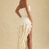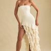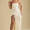 Lovingly crafted with extra-special occasions in mind, the Diletta gown is uplifted with layers of cascading ruffles that create a dynamic look with every step. It’s crafted from lightweight stretch georgette to a figure-skimming column silhouette punctuated with a thigh-high split at the side. The bandeau neckline is anchored with internal silicone tape for a secure fit.