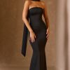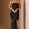 Scarf-Detail Strapless Gown in Black
