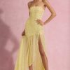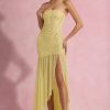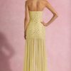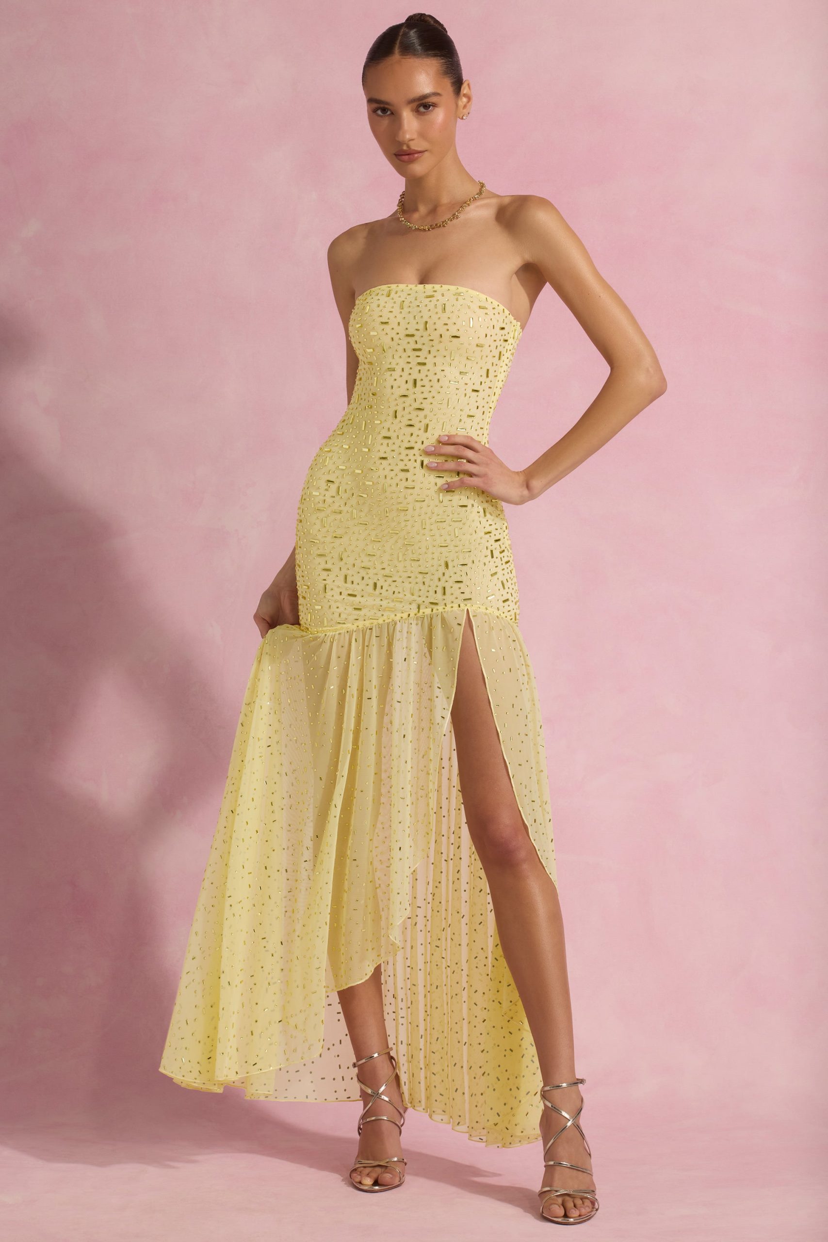 Made for milestone moments, the Kerra maxi dress is crafted from premium, dual-layered 20D stretch mesh with a figure-hugging bodice that enhances your natural curves and features a sheer asymmetric hem designed for dynamic movement with every step. It comes with detachable, adjustable straps and is fully embellished with our signature HOTFIX crystals for sparkle you’ll have to see to believe.