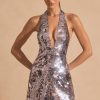 Sequin-Embellished Halterneck Mini Dress in Pink