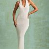 A love letter to summer dressing. Crafted from lightly textured and subtly sheer bouclé knit fabric, the Mirri maxi dress is a warm-weather favourite that can be styled on holiday and at home. It’s cut to a classic halterneck silhouette with adjustable straps for custom styling and is designed to skim your curves.