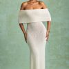 Summer dressing made easy. Designed for layering over your bikini on holiday or dressing up for dinner dates, the Naia maxi dress is crafted from lightly textured and subtly sheer bouclé knit fabric that hugs your curves. It’s cut to an off-shoulder silhouette with a foldover panel that can be adjusted for your perfect fit.
