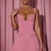Bow-Detail A-Line Mini Dress in Dusty Pink