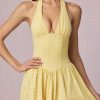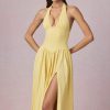 Broderie Anglaise Halterneck Midaxi Dress in Lemon Yellow