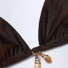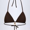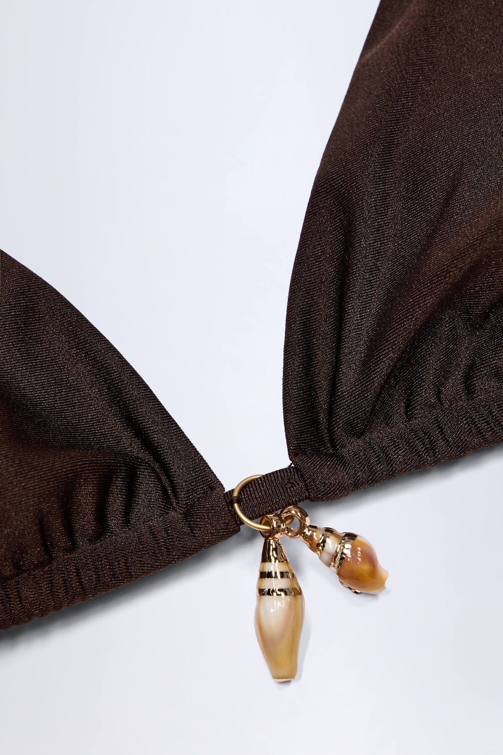 Charm-Detail Triangle Bikini Top in Dark Chocolate