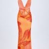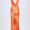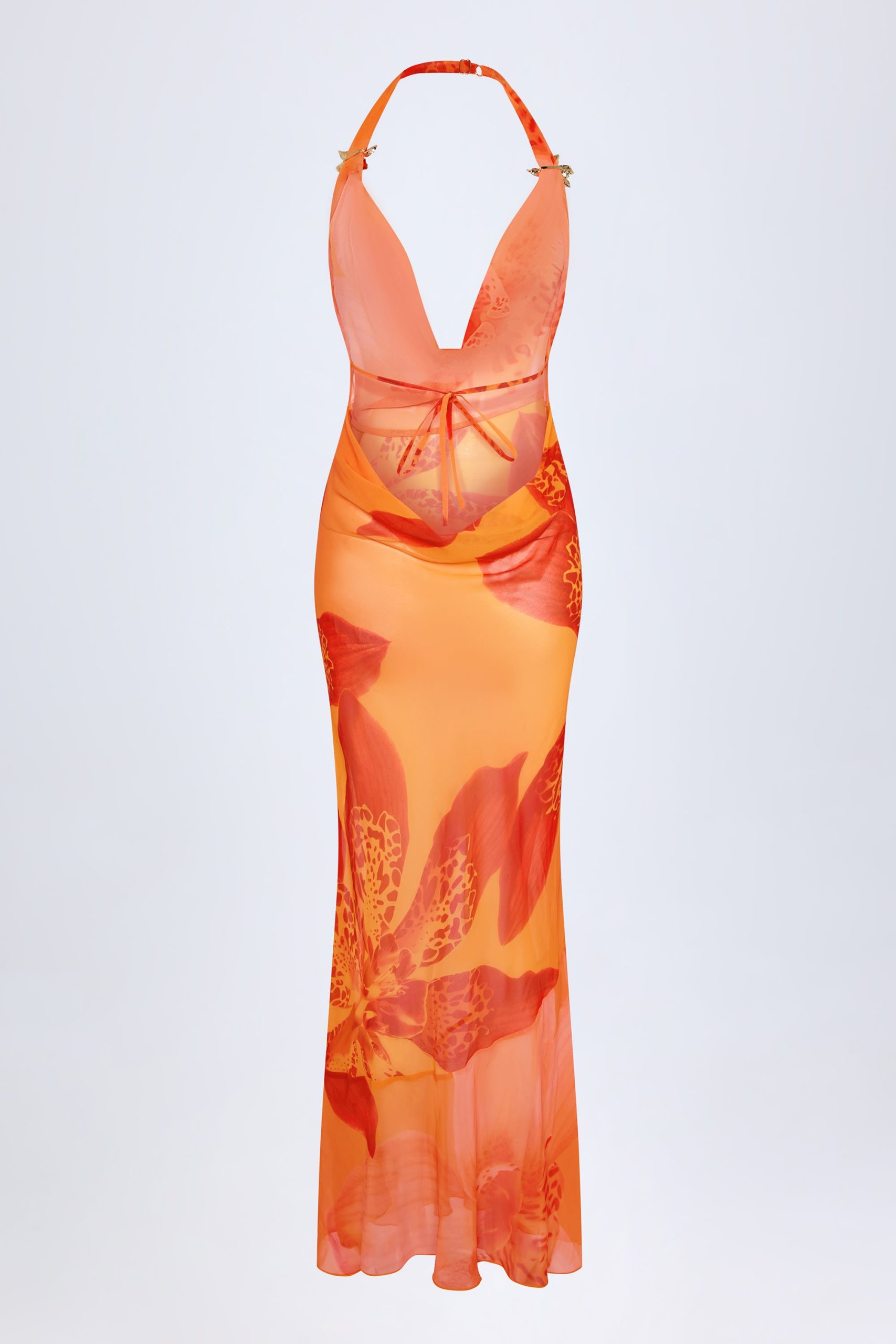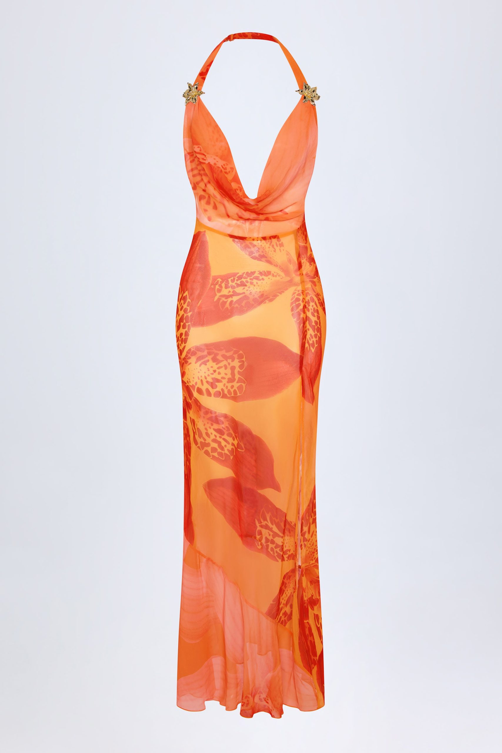 Low effort, high impact and perfect for your next trip. Cut on the bias from airy chiffon for a fluid, body-skimming fit, the Taveuni maxi dress is one you’ll need to pack. Designed with draped cowl detailing at the front and back to show off your coordinating swimwear, it features a low open back with adjustable ties for your perfect fit and is detailed with pretty floral hardware at each strap. It’s soft, sheer and made for after-dark plans in the tropics.