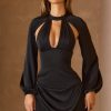 Cut-Out Open-Back A-Line Mini Dress in Black