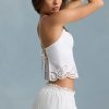 Taking inspiration from intricate Mediterranean artwork, the Vasilia camisole top is elevated with laser-cut detailing and scalloped edges. It’s crafted from lightweight cotton poplin, ideal for warm-weather styling, and features a statement open back with adjustable ties.