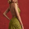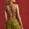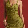Devoré Cowl A-Line Mini Dress in Olive Green