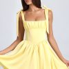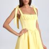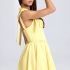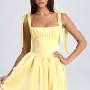 Sweet silhouettes made for social season. A stunning design that’ll take you from day to night, the Bellamy dress is crafted from lustrous lightweight satin with a fitted bodice that cinches the waist and a voluminous mini-length skirt. It’s framed with a straight neckline enhanced with delicate pleats, functional shoulder ties and signature lace-up back detailing that can be adjusted for your perfect fit.