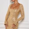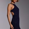 Sparkle season has arrived at Oh Polly and the Arabella mini dress is a premium design created to capture the light. Created in our stretch jersey fabric with woven metallic yarn throughout, Arabella features all over hotfix embellishment to enhance its sparkle. This stunning A-line silhouette is cut to a mini length with a high neckline and open back.