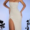 The dress you’ve been waiting for has finally arrived. Designed in our premium jersey fabric that enhances every curve, Verbier features a fully embellished overlay with hand sewn bead adornments. With a decolletage exposing cowl bandeau neckline with bust flattering cowl detailing, Verbier is complete with a seductive thigh high split on the left hand side. Extravagant and flattering, Verbier is the must have style to be seen in this season.