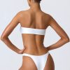 Beach club styling made easy. Perfect for minimising tan lines on sun-soaked days, this bikini top is crafted from stretch-jersey swim fabric to a bandeau silhouette with internal silicone taping for enhanced hold and support. It’s uplifted with a statement cut-out at the bust, anchored with hammered gold-tone ring detailing.