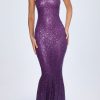 Make memories in the Kinsley maxi dress. A statement design crafted from lightweight crochet and lined with figure-hugging 20D stretch mesh, it’s cut to a fishtail silhouette and framed with a bandeau neckline, secured with internal silicone tape for enhanced hold. It’s available in three standout hues and adorned with sparkling sequin embellishments.