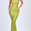 Make memories in the Kinsley maxi dress. A statement design crafted from lightweight crochet and lined with figure-hugging 20D stretch mesh, it’s cut to a fishtail silhouette and framed with a bandeau neckline, secured with internal silicone tape for enhanced hold. It’s available in three standout hues and adorned with sparkling sequin embellishments.