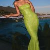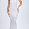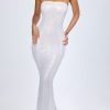 Make memories in the Kinsley maxi dress. A statement design crafted from lightweight crochet and lined with figure-hugging 20D stretch mesh, it’s cut to a fishtail silhouette and framed with a bandeau neckline, secured with internal silicone tape for enhanced hold. It’s available in three standout hues and adorned with sparkling sequin embellishments.
