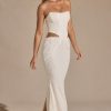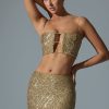 Extra-special silhouettes. Designed to create the effect of coordinating separates, the Saphira gown features a fitted corset bodice and semi-sheer fishtail skirt, framed by a curved hem and draped detailing at the waist. It’s crafted from premium 20D stretch mesh saturated with custom-developed square sequins and bead embellishments that sparkle under spotlights.