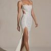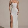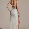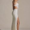 Embellished Cut-Out Fishtail Maxi Dress in White