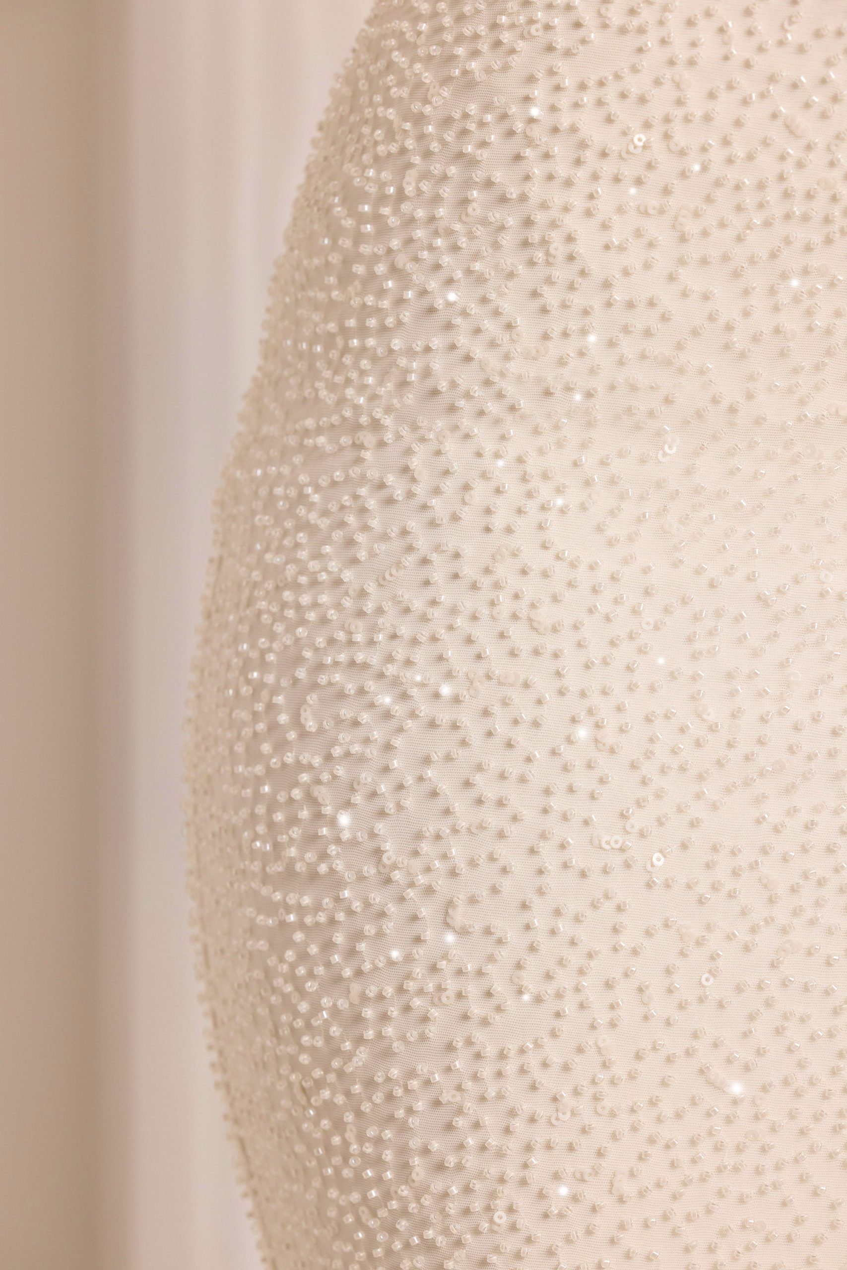 - Fully embellished with seeded beading