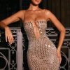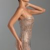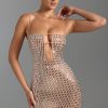 Exclusive eveningwear. Designed for memorable evenings, the Alanni mini dress is crafted from premium 20D mesh with a touch of stretch and embellished with scores of rectangular HOTFIX crystals that catch the light from every angle. It’s cut to a classic bodycon silhouette that hugs your curves and features a structured boned bodice punctuated with precise cut-outs at the front. The camisole shoulder straps can be adjusted for enhanced support.
