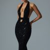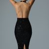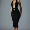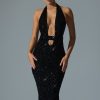 Dare to stand out in the Harlyn dress. A statement silhouette crafted from luxe stretch fabric, it’s cut to a figure-hugging midaxi silhouette with halterneck straps, statement cut-out detailing at the front and a high-impact open back. It’s saturated with scores of sparkling sequins, inspired by the festive spirit of the season.