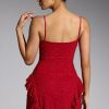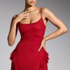 Feminine and flirtatious, the Domblans mini dress is cut from our premium dual-layered mesh fabric and features all-over embellishment. Perfect for sparkling under dance floor spotlights, Domblans showcases bead and crystal adornments, a flattering curved neckline, and ruffle detailing at the hips.