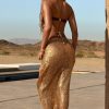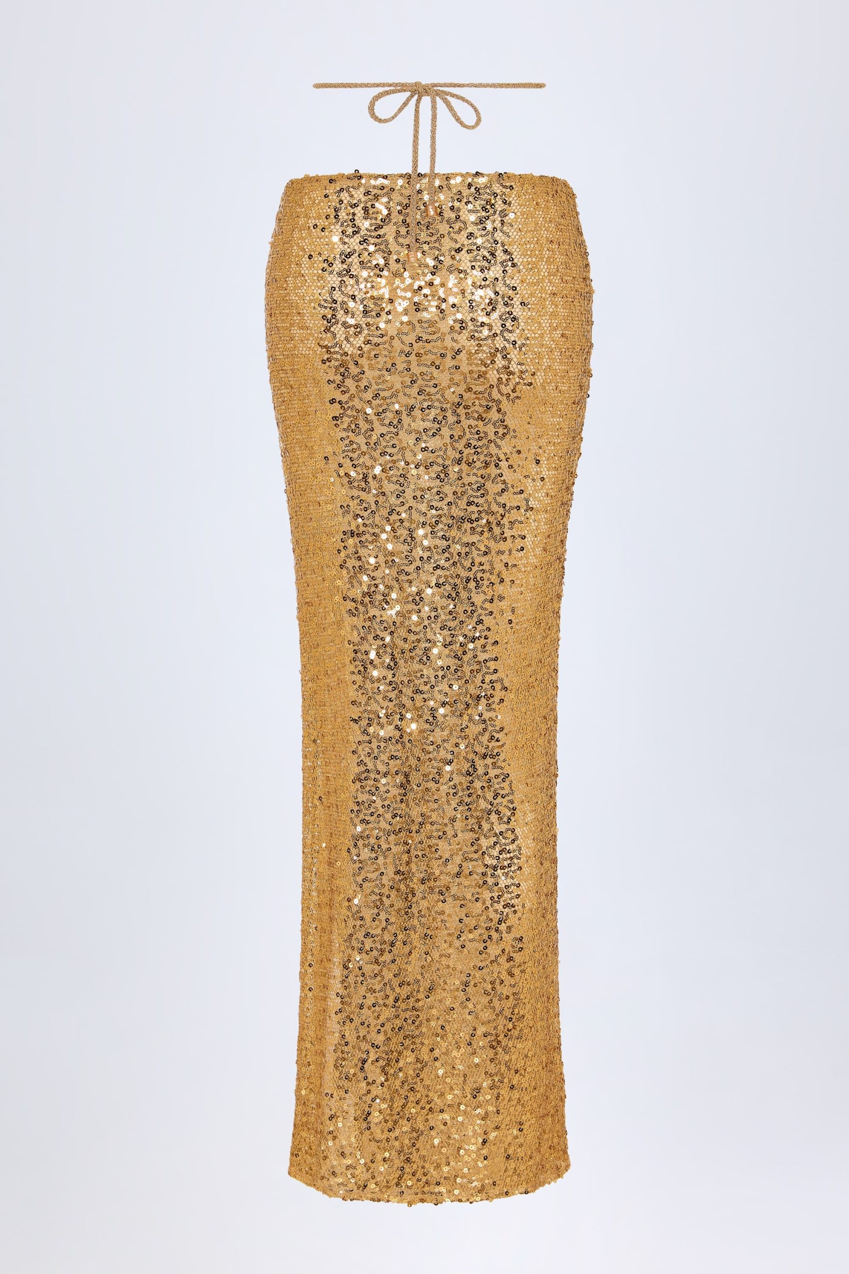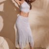 Sultry sparkle for balmy nights. A lightweight, crochet-knit design elevated with tonal sequins, the Abaco maxi skirt is cut to a column silhouette and detailed with a statement thigh-high split. It’s anchored with gold-tone hardware and adjustable strap detailing.