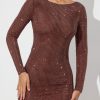 Sultry moments. A glittering design cut from premium dual-layered mesh with hotfix embellishment throughout, Delfina is a minimalistic silhouette with high-impact detailing. With a sleek high neckline and a seductive low cowl back, this bodycon mini dress is perfect for partying from dusk till dawn.