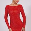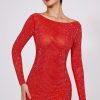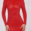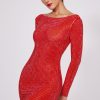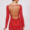 Embellished High Neck Cowl Back Mini Dress in Fire Red