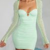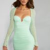 The design you all love in all new, on trend colourways. Ultra-luxe and undeniably sexy, St. Germain is the perfect statement mini dress. Designed in our body contouring stretch mesh fabric, St. Germain is fully ruched for an endlessly flattering fit. Featuring semi sheer raglan sleeves with hand embellished pearl and bead detailing that flare at the wrist and cut to a leg lengthening mini length, St. Germain can be relied upon to exude allure at your next event.