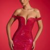 Sparkle that speaks for itself. The Leonora mini dress is embellished with diamond-shaped HOTFIX embellishments that catch the light from every angle, perfect for special events and festive parties. It’s made from our premium power mesh with a touch of stretch and a built-in corset for a figure-defining bodycon fit. It’s framed with a plunging sweetheart neckline and off-shoulder cap sleeves.