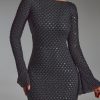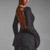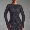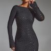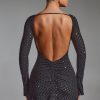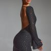 Embellished Open-Back A-Line Mini Dress in Black
