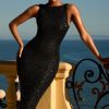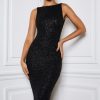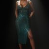 We love a classic with a twist, so we designed the Gianina midaxi dress. A minimalist design with a high-neck bodycon silhouette, it’s crafted from premium 20D stretch mesh and lined in stretch jersey for enhanced coverage. It’s framed with a sultry low open back, complete with an adjustable strap for your perfect fit, and embellished with scores of sparkling sequins and beads.