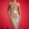 Designed for nights you’ll never forget, the Munira midaxi dress is saturated with scores of custom-designed diamond HOTFIX embellishments for endless sparkle. It’s crafted from stretch power mesh to a figure-hugging silhouette framed with a plunging neckline and crossover back straps that can be adjusted for a supportive fit.