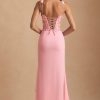 Worth making plans for, the Nathalia maxi dress is cut from lightweight chiffon with a plunging V-neckline, waterfall split hem and statement lace-up back. It’s overlaid with a waist-cinching corset decorated with coral-inspired embellishments that sparkle under spotlights. The rouleau straps are fully adjustable for your perfect fit.