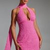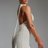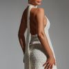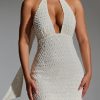 Embellished Scarf-Detail Halterneck Mini Dress in White