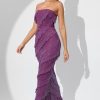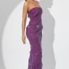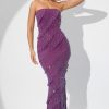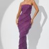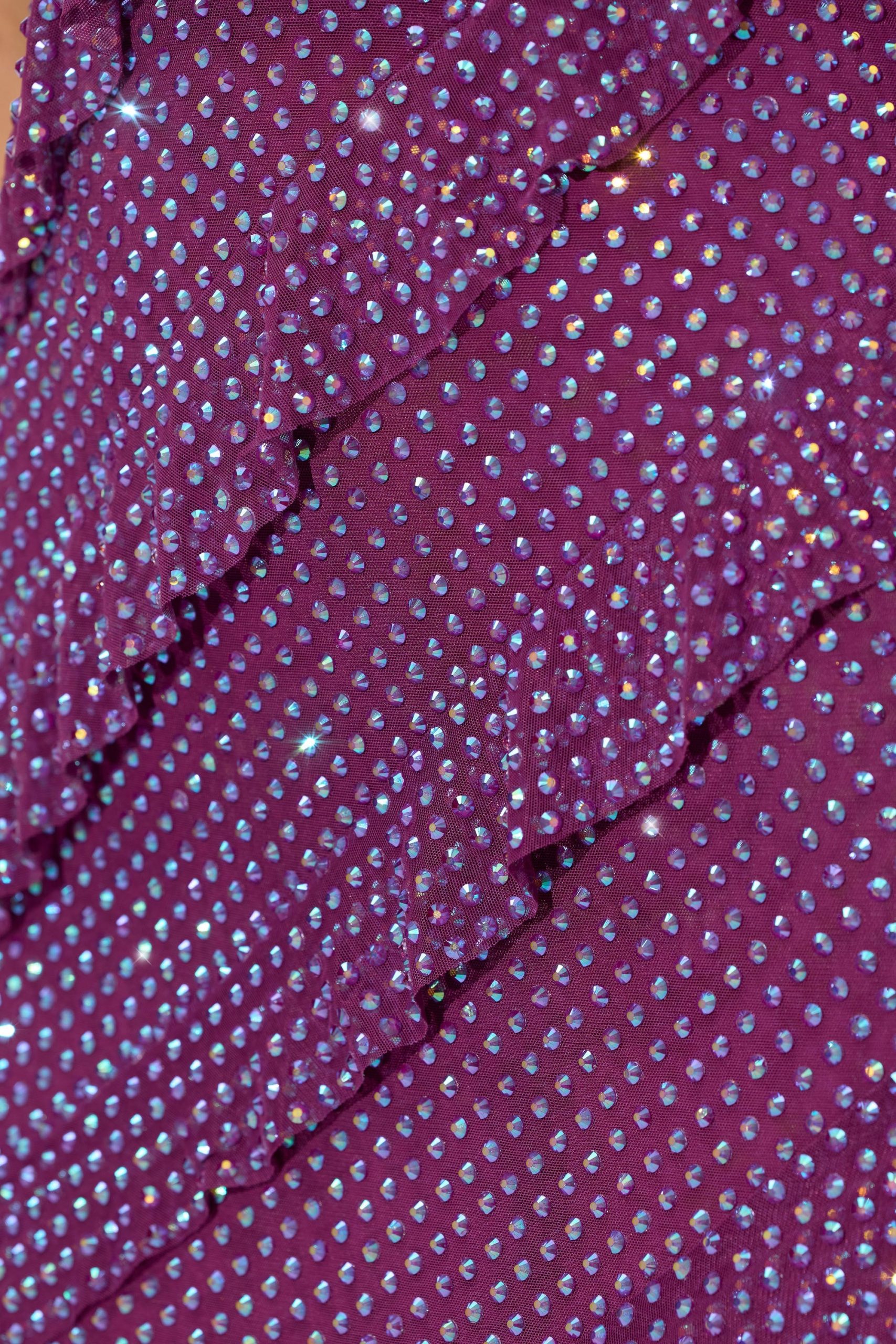 Romantic moments. Designed in our premium stretch mesh fabric with full body ruffling throughout, the Dulce maxi dress is fully embellished with glittering hotfix embellishment that sparkles under dance floor spotlights. A bodycon design created to enhance your silhouette, Dulce is complete with a built-in corset that provides enhanced shaping and support.