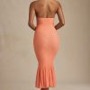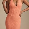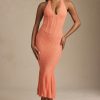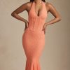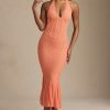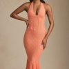 Step into spring styling with the Olena midaxi dress. Designed to hug every curve to perfection, it’s crafted from premium stretch lace, lined with soft, sheer jersey and cut to a fishtail silhouette with a corset-inspired bodice elevated with delicate scalloped trims. It’s framed with a plunging halter neckline traced with pretty scalloped trims and features a godet-pleated hem for dynamic movement.